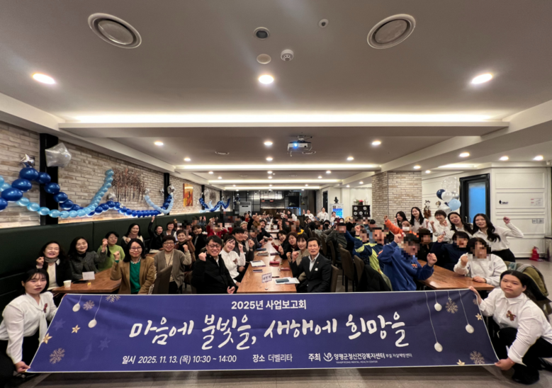 [양평군 세계타임즈=송민수 기자] 양평군정신건강복지센터(부설 자살예방센터)는 지난 13일 양평 더벨리타 웨딩컨벤션에서 ‘2025년 사업보고회: 마음에 불빛을, 새해에 희망을’을 성황리에 개최했다. 이날 행사에는 센터 이용자와 가족, 자원봉사자, 유관기관 실무자 등 160여 명이 참석해 한 해의 성과를 돌아보고 서로를 격려하는 시간을 가졌다.