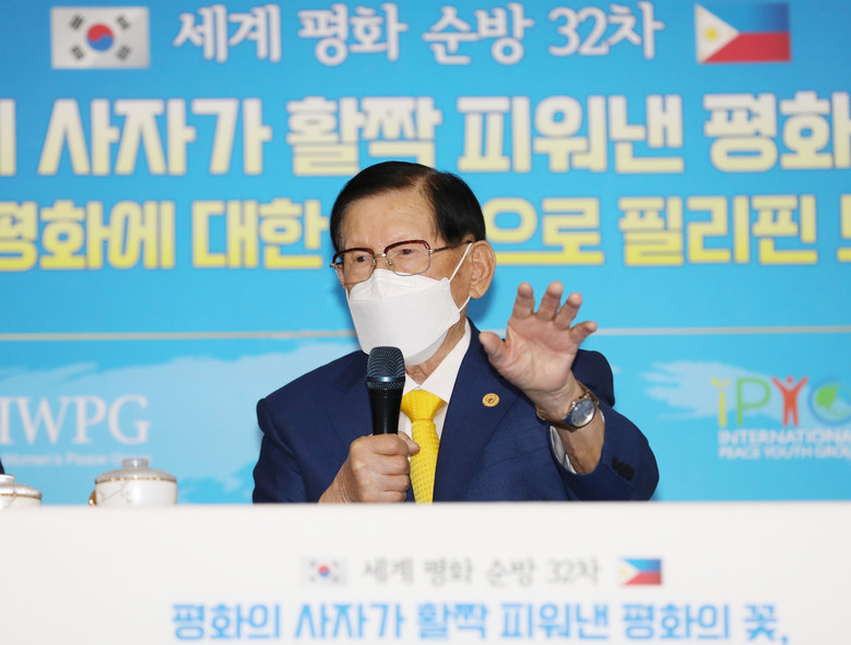 HWPL 이만희 대표는 28일 인천공항을 통해 입국, 순방성과에 대한 기자들의 질문에 “가톨릭과 이슬람 간 40년 분쟁으로 12만 명이 죽은 민다나오에 처음 방문했을 때 ‘각 지도자와 주민들을 불러 각자가 섬기는 신이 사람을 죽이라고 가르치는가?’라고 물으며 오늘을 기준해서 전쟁을 멈추고 함께 평화운동을 하자고 제안하고 각서를 쓰게 했다. 정부나 군대나 그 누구도 할 수 없었던 일을 민간 차원에서 이뤄낸 것”이라며 “HWPL은 평화를 위해서 일한다. 대한민국도 전 세계에서 최고의 평화의 나라가 되도록 만들어 가자. 도와달라”고 말했다.