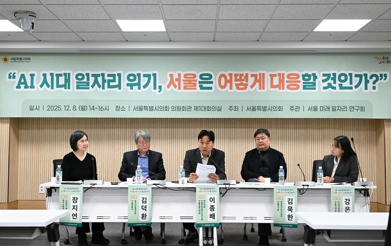 [서울 세계타임즈=이장성 기자] 서울특별시의회 의원연구단체 '서울 미래 일자리 연구회'(대표의원 이종배)가 주관하는 "AI 시대 일자리 위기, 서울은 어떻게 대응할 것인가" 토론회가 8일(월) 서울시의회에서 개최되었다.