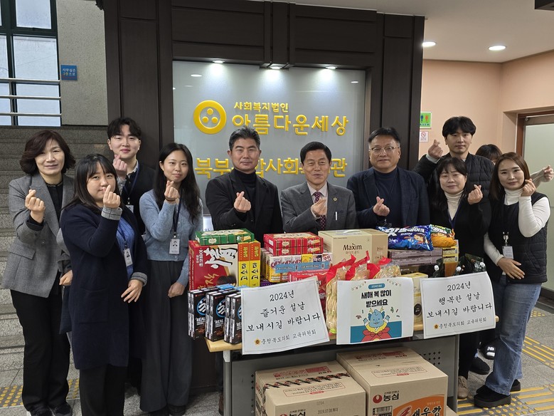 [충북 세계타임즈=이현진 기자] 충북도의회 교육위원회(위원장 김현문)는 설 명절을 앞두고 사회복지시설과 교육시설 5곳을 찾아 온정을 나누고 이웃사랑을 실천했다.