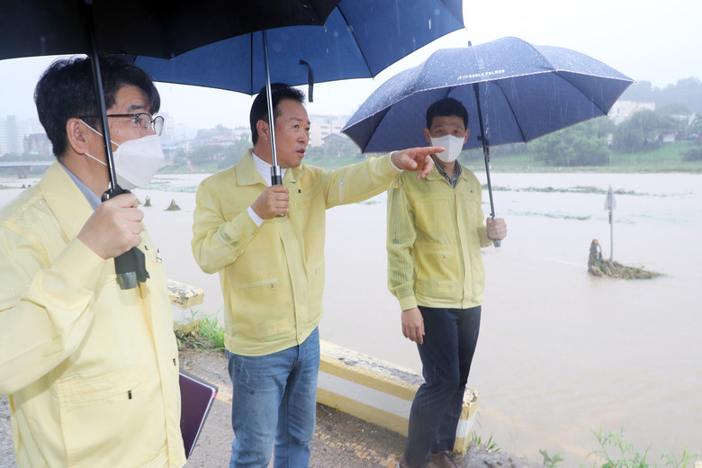 [충북 세계타임즈=이현진 기자] 충북도의회 황영호 의장은 11일 청주 무심천과 율량천 일원을 찾아 폭우 피해 현장을 둘러보며 집중호우 대비 상태와 복구상황을 점검 했다.