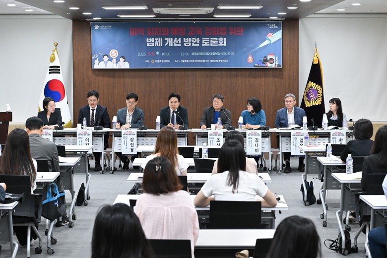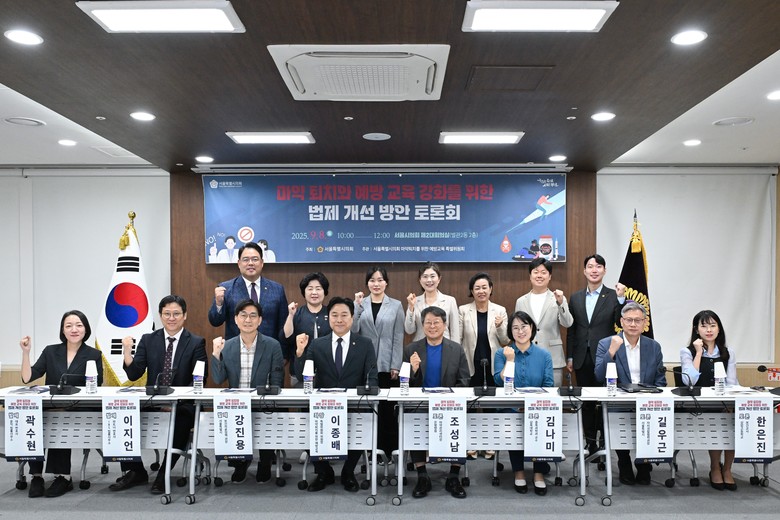 서울특별시의회 마약 퇴치를 위한 예방 교육 특별위원회는 최근 청소년에게까지 심각하게 퍼지고 있는 마약범죄를 근절하기 위한 입법적 방안을 모색하기 위하여 9월 8일(월) 오전 10시부터 서울특별시의회 별관 제2대회의실에서「마약 퇴치와 예방 교육을 위한 법제 개선방안 토론회」를 개최했다.
