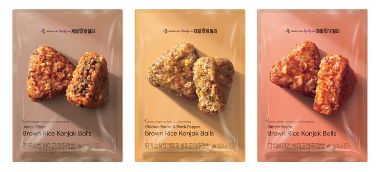 ‘제일맞게컬리 현미곤약 주먹밥’ 3종은 ‘전주비빔’, ‘닭가슴살 블랙페퍼’, ‘김치베이컨’으로, CJ제일제당만의 기술력을 통해 현미의 거친 식감과 곤약 특유의 미끌거림을 개선하고 고슬고슬한 밥알의 식감을 극대화했다.