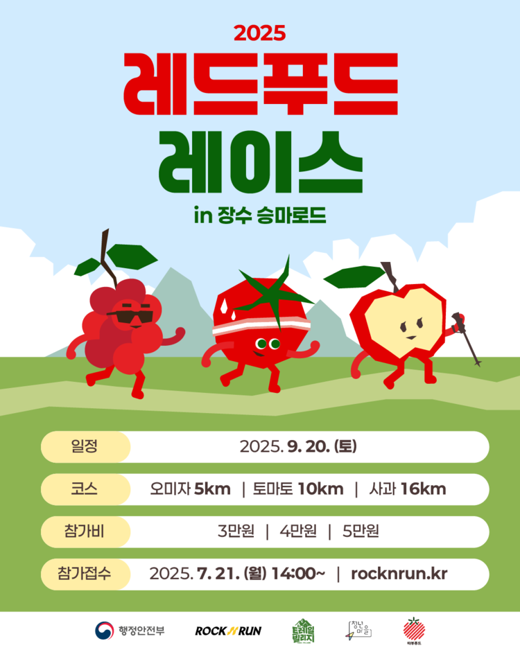 최훈식 군수는 “레드푸드레이스는 장수의 자연과 특산물을 함께 즐길 수 있는 특별한 프로그램으로, 군민과 관광객이 어우러지는 축제가 될 것”이라며 “앞으로도 스포츠와 관광을 연계한 다양한 콘텐츠로 활력 있는 장수를 만들겠다”고 말했다.