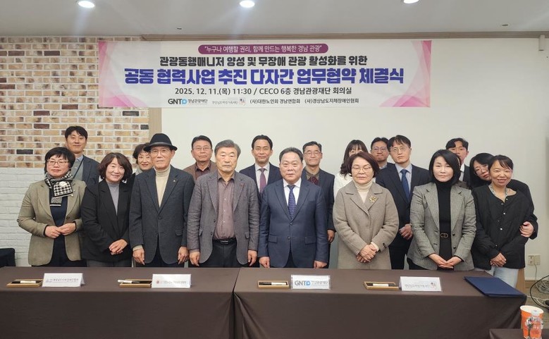이번 협약은 ‘누구나 여행할 권리, 함께 만드는 행복한 경남 관광’이라는 슬로건 아래 장애인, 고령자 등 관광 취약 계층을 포함한 관광객 모두가 불편함 없이 경남 여행을 즐길 수 있는 경남형 관광복지 환경의 초석을 다지기 위해 마련됐다.