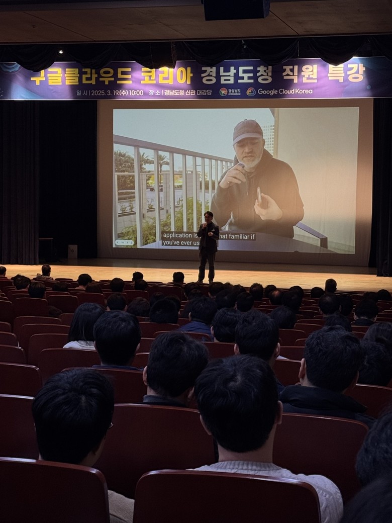 구글클라우드 코리아 지기성 사장과 박진호 공공행정파트가 강연자로 나서 도청 공무원 500여 명에게 열띤 강의를 했다.
