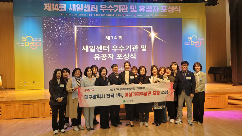 [대구 세계타임즈=한윤석 기자] 대구광역시가 여성가족부 주관 ‘2024년 여성경제활동촉진 지원사업 평가’에서 전국 1위 지자체로 선정돼 3월 28일(금) 마포중앙도서관 마중홀(서울 마포구 성산동 소재)에서 개최한 새일센터 우수기관 및 유공자 포상식에서 우수기관 표창을 수상했다.