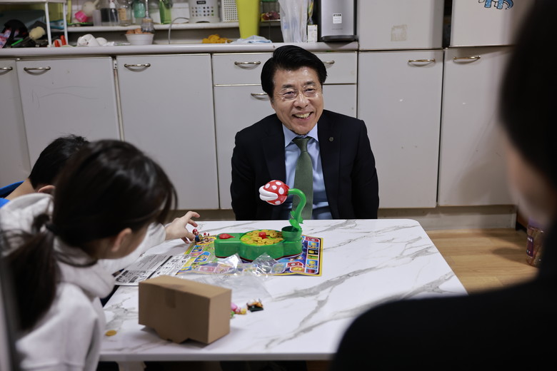 서 구청장은 아이들과 장난감을 함께 살펴보며 눈높이 소통을 이어갔다. 이어 김 씨의 이야기를 듣고 “학원비 면제 사업 등 실질적인 지원을 통해 아이를 키우는 과정에서 송파구가 늘 곁에서 함께하겠다”고 말했다.