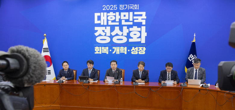 [세계타임즈 = 신상철 기자] 더불어민주당 김병기 원내대표가 23일 국회에서 열린 원내대책회의에서 정기국회 내 쟁점법안 처리 의지를 밝히고 있다. 2025.9.23