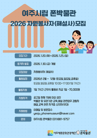 여주시립 폰박물관 2026년자원봉사자(해설사) 모집