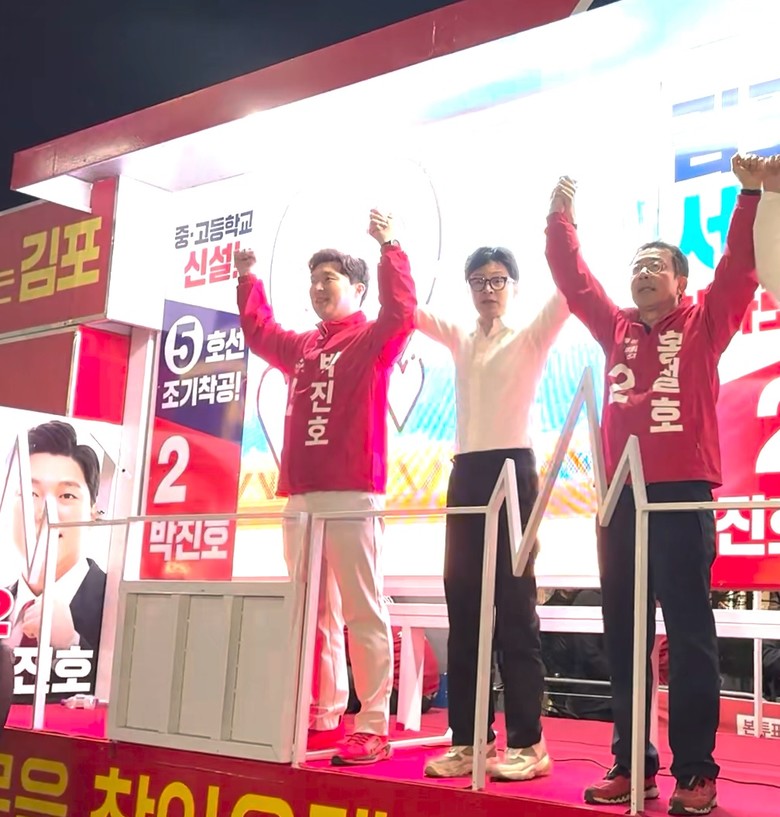 앞서 한동훈 위원장은 지난 5일 사우사거리 현장 유세를 비롯해 지난달 30일 구래역, 지난 2월3일 장기동 라베니체에서 각각 김포교체 유세를 펼쳤다.