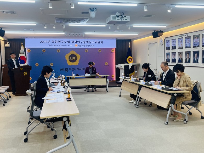 이번 회의는 「세종특별자치시의회 의원 연구모임 활동 지원 조례」에 따라 구성된 심의위원들이 참여한 가운데, 의원 연구모임의 정책연구용역 과제를 심의·의결하기 위해 마련되었다.