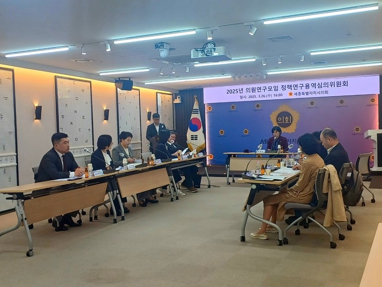 [세종 세계타임즈=이채봉 기자] 세종특별자치시의회(의장 임채성)가 26일 시의회 1층 대회의실에서 ‘2025년 정책연구용역심의위원회’를 개최했다.