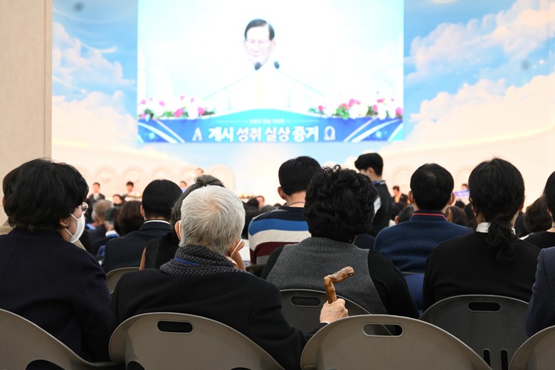 이날 이만희 총회장은 요한계시록 전장의 성취 실상에 대해 강연하며 종교계의 화합을 다시 한번 강조했다.