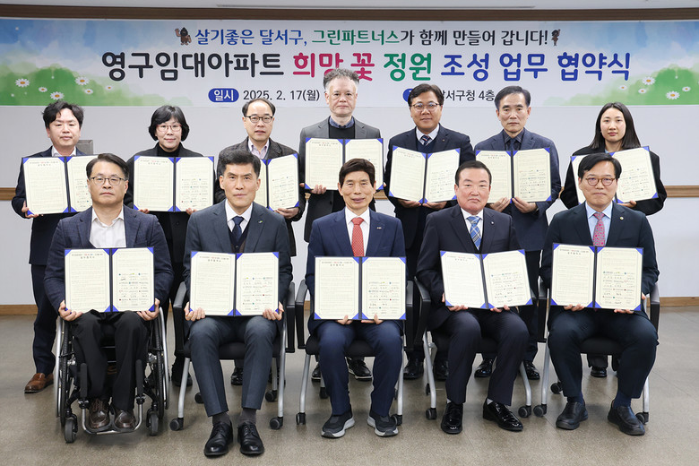 이번 협약은 대구도시개발공사에서 관리하고 있는 상인비둘기아파트를 비롯한 달서구 지역의 영구임대아파트 6개단지 내 유휴부지에 꽃나무를 식재해 입주민들의 주거환경을 개선하고 ESG경영을 실천하고자 하는 내용을 담고 있다.
