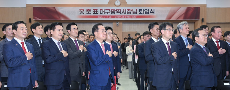 ▸ 대구발(發) 뉴패러다임 제시 … ‘대구혁신 100+1’ 여정 되돌아보며 재도약 다짐 [세계타임즈=대구 한윤석 기자] 대구광역시는 4월 11일(금) 오전 11시, 산격청사 대강당에서 ‘파워풀대구! 민선8기 혁신과 도약의 여정’을 마무리하는 ‘제35대 홍준표 대구광역시장의 퇴임식’을 거행했다.