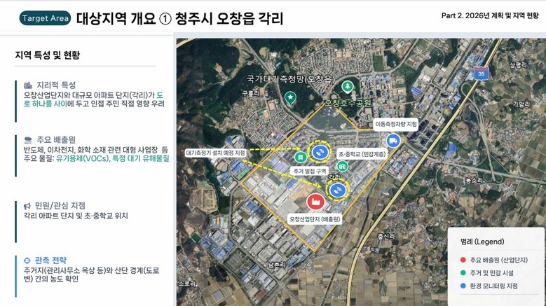 오창산단은 산업시설과 주거지역이 인접해 있어 악취 관련 민원이 지속적으로 제기돼 온 지역이다. 이에 충북도는 주민이 직접 참여하는 모니터링을 통해 악취 발생 상황을 신속히 파악하고 대응할 계획이다.