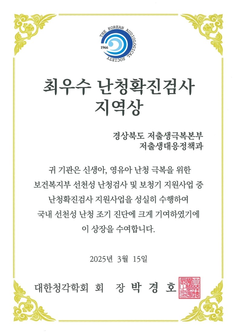 지원 금액은 검사비 7만원과 보청기는 개당 135만원까지 소득 기준 관계없이 지원해 주고 있으며, 경북도는 2024년에 보청기 7명과 검사비 16명을 지원했다.