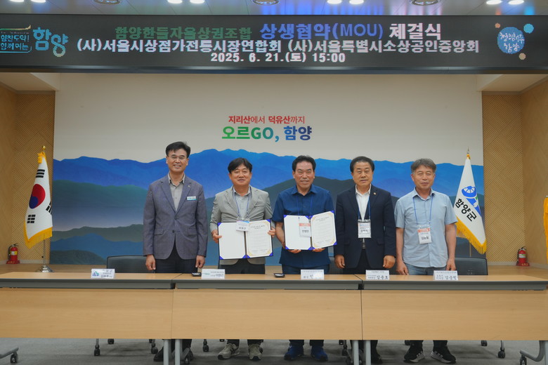 이번 업무협약(MOU)은 서울과 지방 간 소상공인 단체 및 골목형 상점가, 전통시장 간의 교류·협력을 강화하고, 함양 전통시장과의 농축특산물에 대한 직거래 유통 기반을 조성함으로써 상호 지속 가능한 발전을 도모하기 위한 목적으로 마련됐다.
