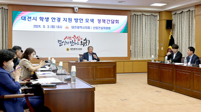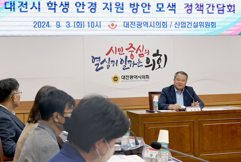 [대전 세계타임즈=이장성 기자] 대전시의회는 3일 시의회 소통실에서 송대윤 의원(더불어민주당, 유성구 2)주재로 ‘대전시 학생 안경 지원 방안 모색 정책간담회'를 개최했다.