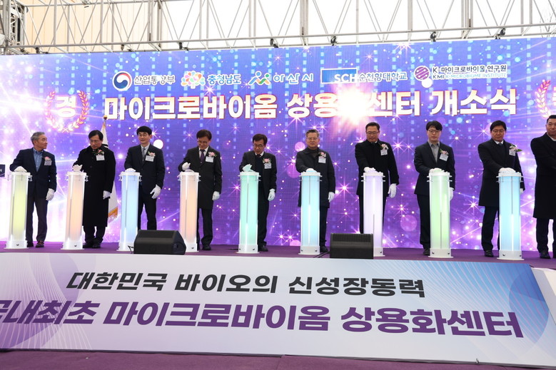 도는 24일 아산시 배방읍 ‘천안·아산 KTX 역세권 연구개발(R&D) 집적지구’에서 전형식 도 정무부지사와 관계 기관 대표 등 300여 명이 참석한 가운데 ‘마이크로바이옴 의약품 상용화센터(이하 마이크로바이옴센터)’ 개소식을 개최했다.