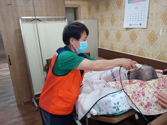 이날 미용봉사는 송남석 단장을 비롯해서 김미경, 이미향, 이하영, 조은숙, 조인숙 가위천사들이 별관, 2층, 3층에서 치매 및 와상 어르신들 40명께 미용봉사를 하였다.