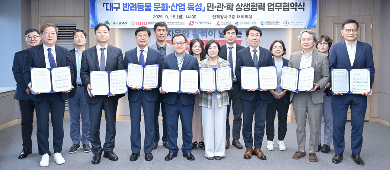 특히 대구시는 이번 협약을 바탕으로 민·관·학 거버넌스를 구축해 반려동물 문화·산업 정책 수립에 전문가 참여를 확대함으로써, 정책의 전문성과 현장성을 강화하고 실효성을 높일 계획이다.