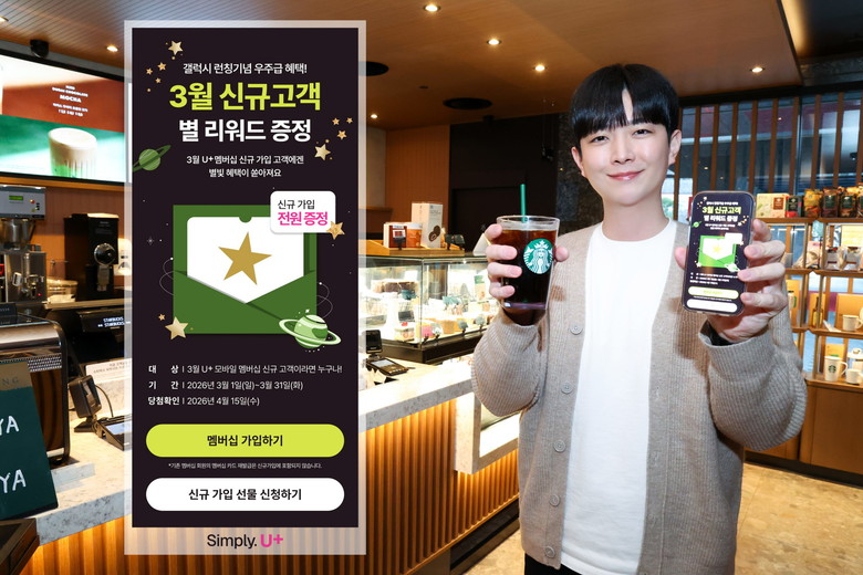 먼저, LG유플러스의 모바일 고객 중 LG유플러스 멤버십에 처음 가입한 고객에게는 스타벅의 대표 리워드인 별 8개를 선물한다. 멤버십 신규가입 후 앱 내 이벤트페이지에서 신규 가입 선물을 신청하는 고객에 한해 다음달 15일에 지급된다.