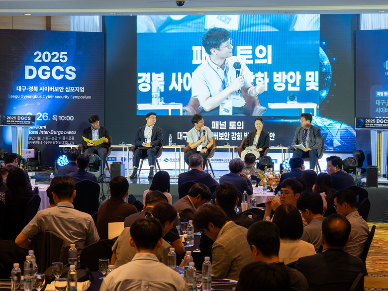 ▸ 특별행사 ‘대구·경북 사이버공격 방어대회 2025’ 동시 개최로 참가자의 눈길 끌어 [세계타임즈=대구 한윤석 기자] 대구광역시는 국가정보원, 경상북도와 공동 주최하고, (사)대경ICT산업협회와 (재)대구디지털혁신진흥원이 주관한 ‘2025 대구·경북 사이버보안 심포지엄’을 200여 명의 정보보호 전문가 및 관계자의 높은 관심 속에 지난 6월 26일(목) 호텔인터불고 대구에서 성황리에 개최했다.
