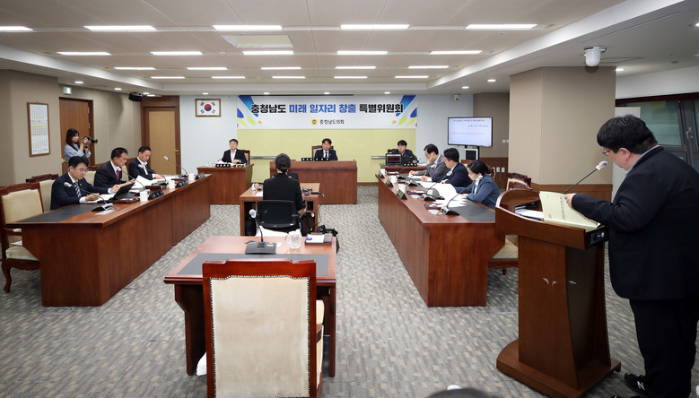 [충남 세계타임즈=백택기 기자] 충남도의회는 27일 ‘충청남도 미래 일자리 창출 특별위원회’ 제5차 회의를 열고 산업경제 및 복지보건 분야의 미래 일자리 창출 계획, 충청남도 일자리 관련 예산 지원 방향 등을 보고 받고, 재정지원 일자리사업 평가 시스템을 도입할 것을 집행부에 제안했다.