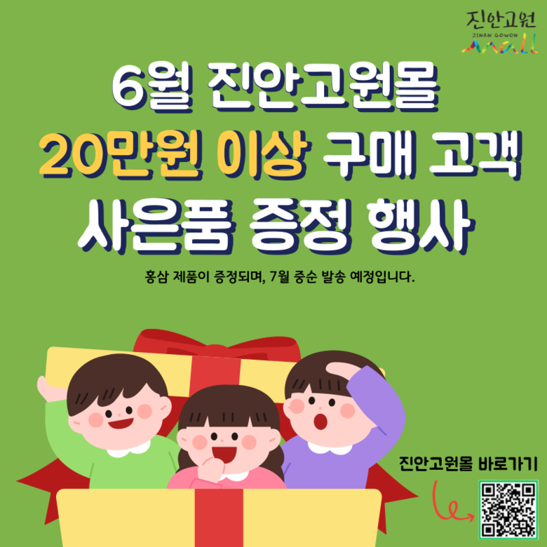 사은품은 (사)진안군홍삼한방클러스터사업단의 홍삼제품이며, 7월 중순에 대상 고객에게 연락 후 발송할 예정이다. 사은품으로 증정되는 홍삼은 진안에서 재배된 인삼을 원료로 한 고품질 제품으로 면역력 증진과 건강 유지에 탁월한 효능이 있다.