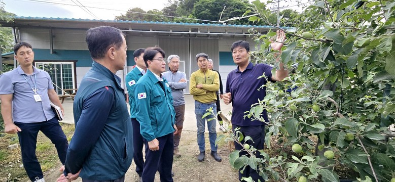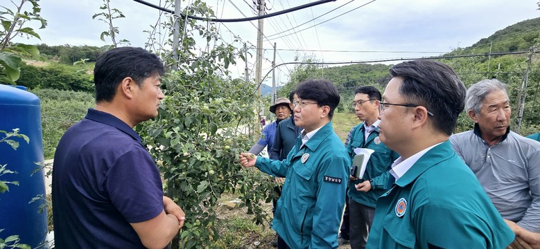 이정곤 경남도 농정국장은 극심한 피해가 발생한 밀양시 산내면 임고리(발례마을), 용전리(오치마을) 등 피해농장을 방문해 우박 피해 상황을 점검했다.