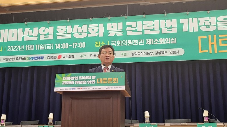 국민의힘 김형동(경북 안동·예천) 국회의원은 더불어민주당 우원식(서울 노원을) 국회의원과 함께 11일 국회 의원회관 제1소회의실에서 <대마산업 활성화 및 관련법 개정을 위한 대토론회>를 개최하였다.