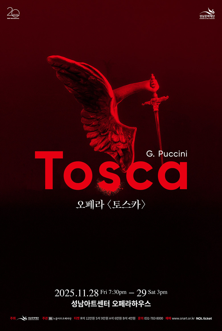 이탈리아 오페라의 거장 자코모 푸치니의 대표작 ‘토스카’는 세계 오페라 무대에서 가장 사랑받는 레퍼토리 중 하나로, ‘라 보엠’, ‘투란도트’와 함께 그의 3대 걸작으로 꼽히는 작품이다. 1800년대 로마를 배경으로 하룻밤 동안 벌어지는 사랑과 질투, 권력과 배신의 이야기를 사실적이고 치밀하게 그려내며 오페라 역사상 가장 드라마틱한 비극이라는 평가받는다. 대표 아리아 ‘별은 빛나건만(E lucevan le stelle)’, ‘노래에 살고, 사랑에 살고(Vissi d’arte, vissi d’amore)’ 등 감정의 절정을 노래하는 선율은 지금도 전 세계 무대에서 사랑받고 있다.