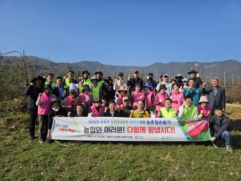 이날 일손돕기에는 김명주 경남도 경제부지사를 비롯해 정영철 경남농협 부본부장 등 경남도 농정국, 경남농협, ‘고.주.모’, 밀양시 공무원 등 60여 명이 참여했다.