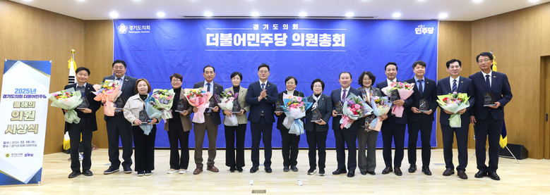 | ▲ ‘2025 더불어민주당 올해의 의원상’ 시상식 기념촬영.(사진=경기도의회 더불어민주당) |