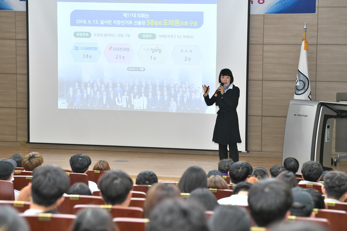 한편, 김지수 의장은 9월 24일 경남대학교 총동창회 및 총학생회 회원 100여명을 대상으로 “함께 만드는 완전히 새로운 경남을 위한 경상남도의회 역할과 방향”이라는 주제로 특강을 실시한 바 있다.