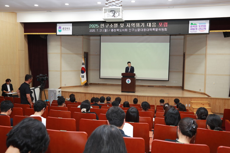 노금식 위원장은 개회사를 통해 “충북은 청주에 인구가 집중되는 반면, 북부권과 남부권은 인구감소와 고령화가 심각해 일부 군은 존립 자체를 위협받는 상황”이라며 “이번 포럼이 위기를 기회로 전환하는 출발점이 되기를 바란다”고 강조했다.