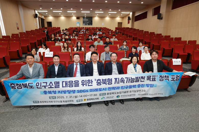 [충북 세계타임즈=이현진 기자] 충북도의회 인구소멸대응대책 특별위원회(위원장 노금식)는 21일 충북유기농업연구소(괴산군) 대강당에서 ‘충북형 지속가능발전 목표 정책연구포럼’을 열고 지방소멸 위기 대응을 위한 실질적 대안을 논의했다.