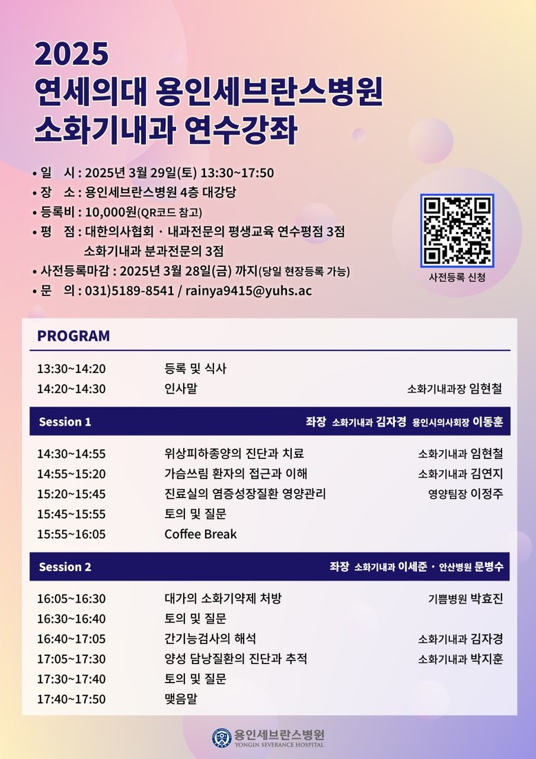 | ▲2025 연세의대 용인세브란스병원 소화기내과 연수강좌 포스터.(사진=용인세브란스병원) |