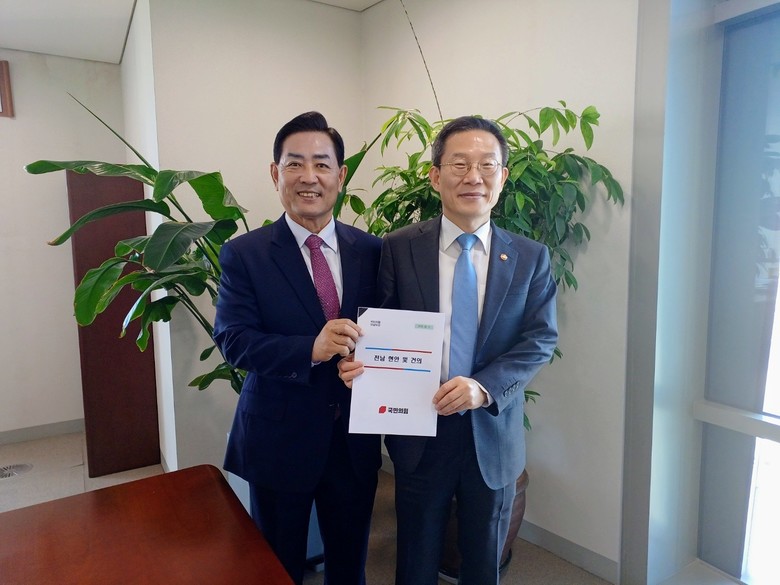 [세계타임즈 = 양준호 기자]국민의힘 전남도당 김화진 위원장(사진 왼쪽, 국민의힘 제공)은 19일 과학기술정보통신부 서울 집무실을 방문, 이종호 장관과 면담을 갖고 전남 발전을 위한 예산 지원을 적극 요청했다.