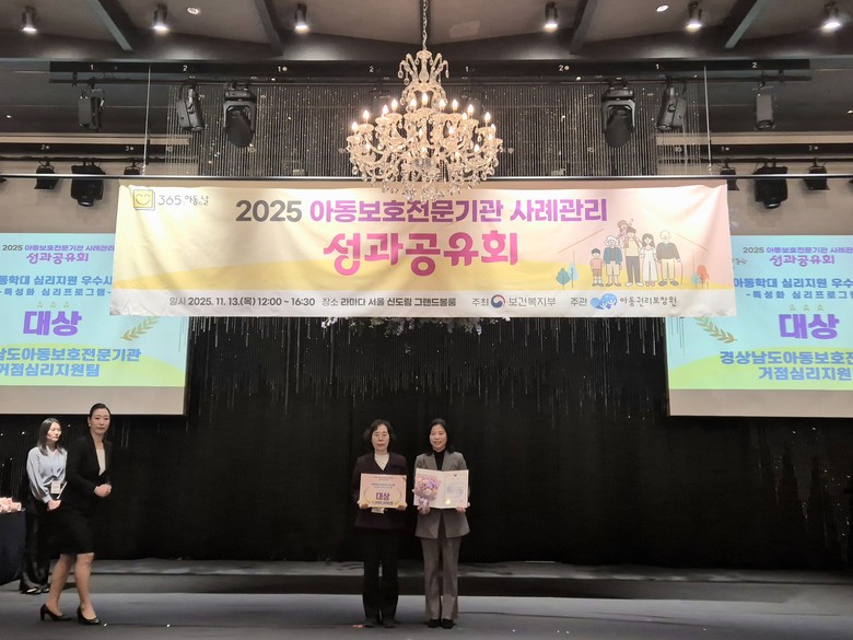 - 아동학대 예방과 피해아동 지원 위해 대응체계 및 전문성 강화 노력할 것 [세계타임즈=경남 최성룡 기자] 경상남도와 경상남도아동보호전문기관은 보건복지부에서 시행하는 ‘2025년 아동학대 심리지원 우수사례 공모전’ 특성화 심리프로그램 분야에서 대상으로 선정됐다고 밝혔다.