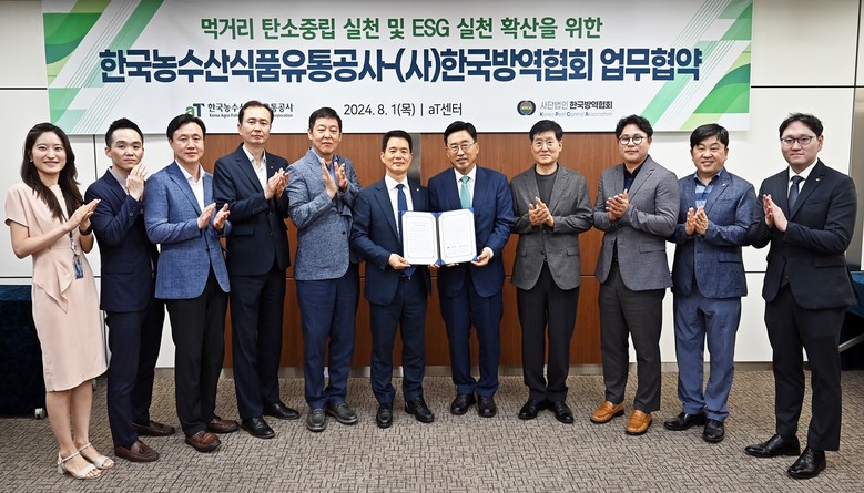 [세계타임즈 = 이현진 기자] 한국농수산식품유통공사(사장 김춘진)와 사단법인 한국방역협회(회장 김성수)는 1일 서울 양재동 aT센터에서 저탄소 식생활 확산과 ESG경영 강화를 위한 업무협약을 체결했다.