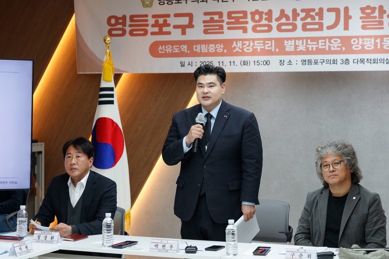 [영등포구 세계타임즈=이장성 기자] 서울특별시 영등포구의회 박현우 의원(여의동·신길1동, 국민의힘 영등포을)은 영등포구청 일자리경제과, 영등포구새마을회와 공동주관으로 2025년 11월 11일 (화) 오후 3시 영등포구의회 3층 다목적회의실에서 「영등포구 골목형상점가 활성화 촉진 간담회」를 개최했다고 밝혔다.
