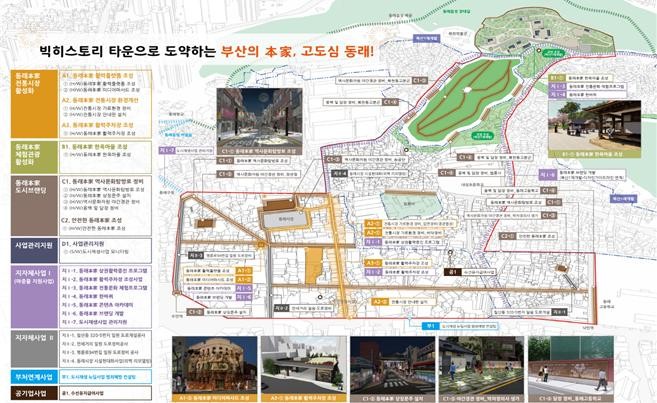 동래구 수민·복산동 ‘빅히스토리 타운으로 도약하는 부산의 본가(本家), 고도심 동래!’는 전통시장의 환경을 개선하고 편의시설을 확충하며 한옥마을과 역사 문화 탐방로를 정비해 지역을 관광도시로 발전시키는 사업이다.