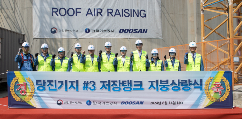 [세계타임즈 = 이영진 기자] 한국가스공사(사장 최연혜)는 8월 14일, 당진LNG생산기지에서 27만㎘ LNG 저장탱크 4기의 지붕 상량(Roof Air-Raising)을 성공적으로 완료했다고 19일 밝혔다.