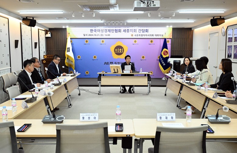 [세종 세계타임즈=이채봉 기자] 세종특별자치시의회(의장 임채성) 산업건설위원회(위원장 김재형)는 21일 시의회 청사 대회의실에서 한국여성경제인협회 세종지회(지회장 이윤희) 관계자와의 간담회를 실시했다.