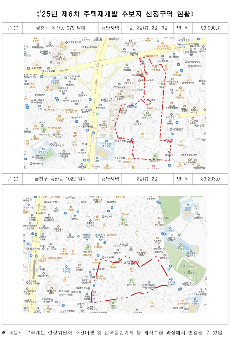 신사동 300번지 일대는 노후도 83%, 반지하주택 비율이 73%에 달하는 노후 저층주거지로 주거환경의 개선이 필요한 지역이며. 독산동 1022번지 일대는 기존에 선정된 재개발사업과 연접한 지역으로 도로 등 기반시설 연계를 통해 주거환경 개선 효과가 클 것으로 기대되며, 신수동 250번지 일대는 70% 이상의 주민이 사업추진에 동의하는 등 주민참여 의지가 높은 지역이다.