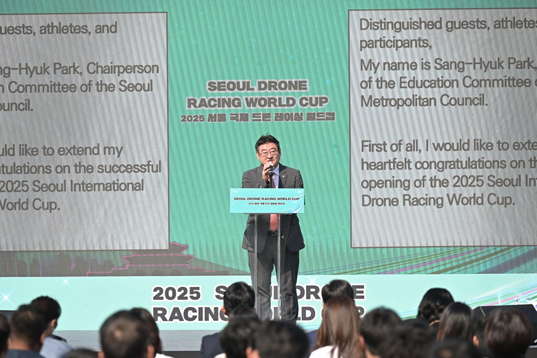 [서울 세계타임즈=이장성 기자] 서울특별시의회 박상혁 교육위원장(서초 제1선거구, 국민의힘)은 10월 1일(수) 광나루 한강드론공원에서 열린 「2025 서울 국제 드론 레이싱 월드컵」개회식에 참석하여 대회 개회를 축하하고, 참가 선수단과 관계자들을 격려했다.