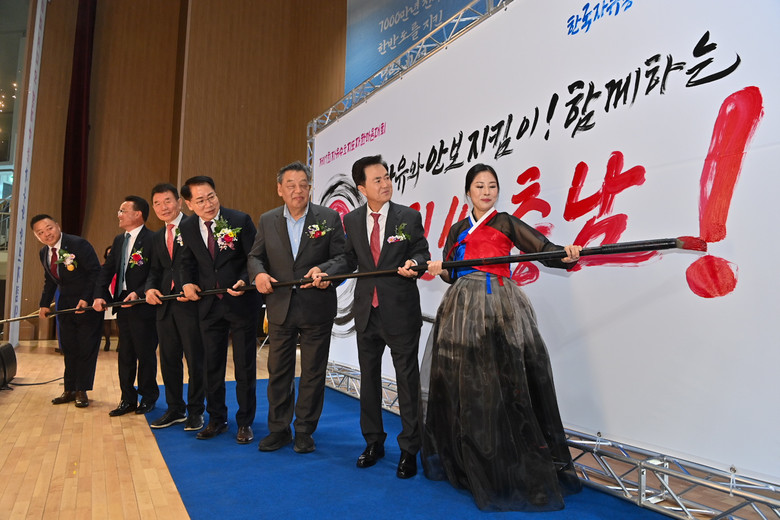 김 지사와 내빈들은 ‘자유와 안보 지킴이! 함께하는 힘쎈충남!’이라는 문구를 캘리그라피로 완성하는 퍼포먼스를 펼쳐 참석자들의 뜨거운 호응을 받았다.